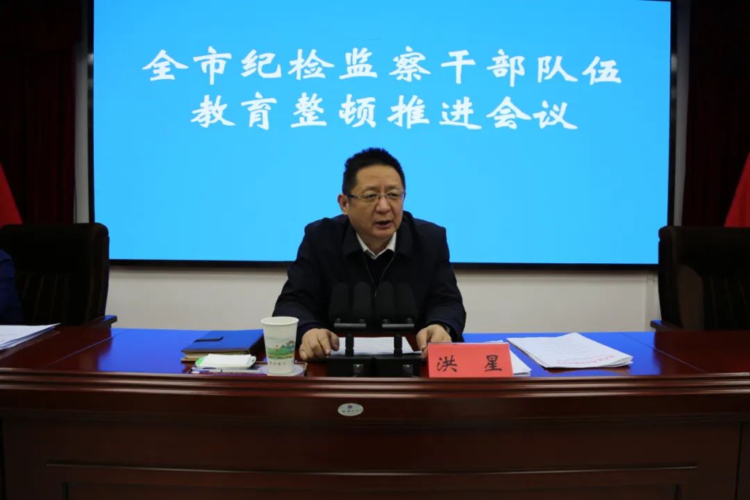 3月21日上午,市纪委监委召开全市纪检监察干部队伍教育整顿工作推进会议。市委常委、市纪委书记、市监委主任洪星出席会议并讲话。